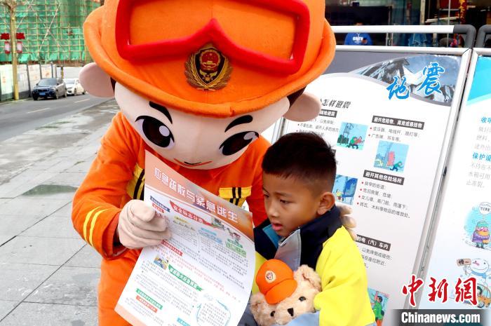 圖為消防救援人員為民眾宣講應(yīng)急知識。費賢浩 攝