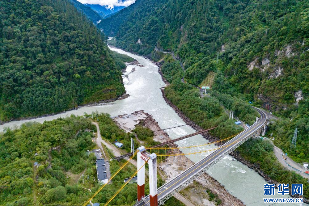 俯瞰通麥路段上的三座建于不同時期的橋(10月10日攝 無人機照片)。位于西藏林芝市波密縣境內(nèi)的川藏公路通麥路段,曾被稱為“通麥天險”。新華網(wǎng) 旦增努布 攝