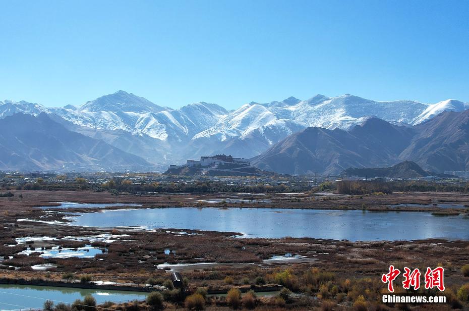 位于西藏拉薩的拉魯濕地國家級(jí)自然保護(hù)區(qū)是目前世界上海拔最高的城市內(nèi)陸天然濕地,保護(hù)區(qū)總面積12.2平方公里,被譽(yù)為“拉薩之肺”。初冬時(shí)節(jié),拉魯濕地與遠(yuǎn)處的布達(dá)拉宮、周圍的雪山構(gòu)成一幅壯美畫卷。圖為11月8日,拉魯濕地景色。(無人機(jī)照片)