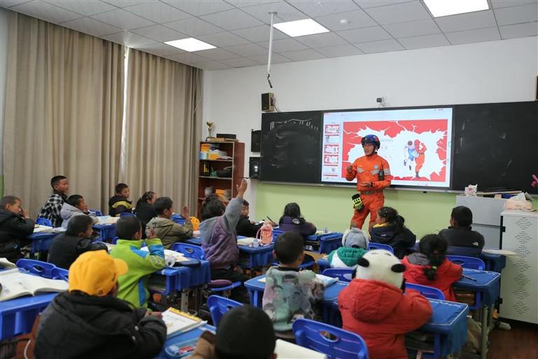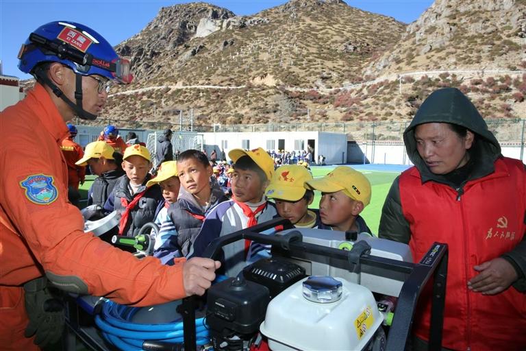 消防員向師生普及地震應(yīng)急避險常識。記者 格桑倫珠 通訊員 仁青卓瑪 攝