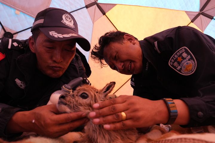 在索南達(dá)杰保護(hù)站駐站的巡山隊(duì)員江措告訴記者,在保護(hù)站后面的網(wǎng)圍欄內(nèi),有隊(duì)員們從卓乃湖救助回來(lái)的小藏羚羊。