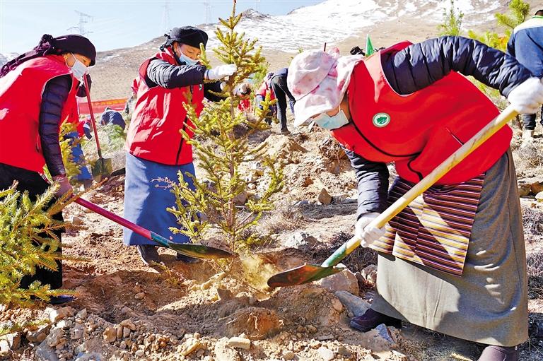 今年3月12日是第47個植樹節(jié)。當天,西藏各地舉行了植樹活動,干部群眾紛紛走進綠化區(qū)、綠化點參加義務植樹活動。活動現(xiàn)場,大家熱情高漲,分工協(xié)作,配合默契。有的揮鍬鏟土,有的扶苗培土,有的踩實固根,還有的提桶澆灌,各個環(huán)節(jié)緊密銜接,現(xiàn)場一片繁忙。