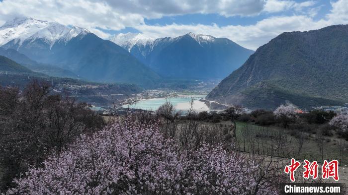 3月28日,西藏自治區(qū)林芝市,雅魯藏布江碧綠的江水與岸畔的桃花、遠(yuǎn)處的雪山相映成趣,春意盎然。雅魯藏布大峽谷全長(zhǎng)504.6公里,最深處6009米,被認(rèn)為是世界上長(zhǎng)度最長(zhǎng)、深度最深的大峽谷。中新社記者 馬銘言 攝