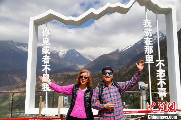3月28日,西藏自治區(qū)林芝市,游客在雅魯藏布大峽谷旅游景區(qū)以南迦巴瓦峰為背景拍照留念。雅魯藏布大峽谷全長(zhǎng)504.6公里,最深處6009米,被認(rèn)為是世界上長(zhǎng)度最長(zhǎng)、深度最深的大峽谷。中新社記者 馬銘言 攝