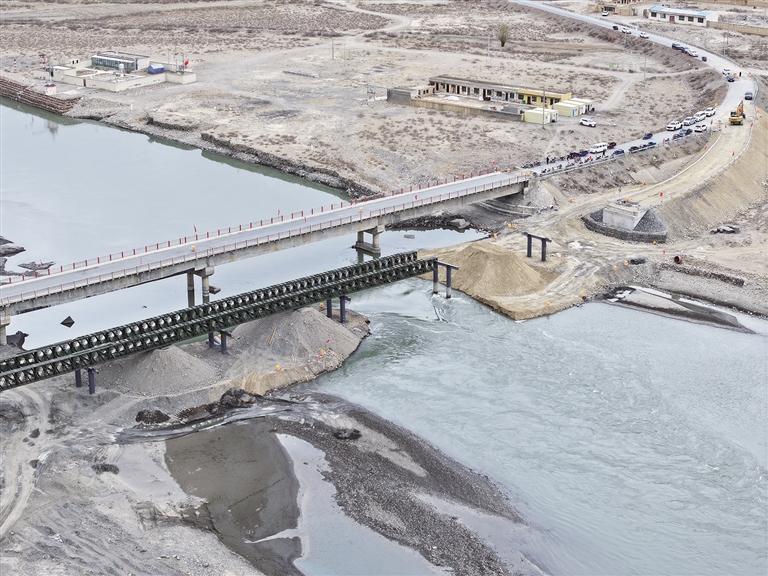 近日,記者從自治區(qū)交通運輸廳了解到,受1月7日定日6.8級地震影響,國道349線上的拉孜雅魯藏布江大橋(簡稱拉孜雅江大橋)損壞嚴重,封閉禁行,在該橋旁邊設(shè)置的臨時保通便道鋼架橋已完成全部工程量的90%,即將完工通車。