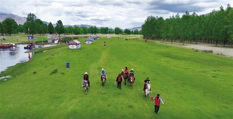 微風(fēng)吹過,神秘樹林中樹葉沙沙作響,與歡笑聲、歌聲交織,構(gòu)成了一幅充滿生機(jī)的藏地林卡風(fēng)情畫。在這里,你能體驗(yàn)到遠(yuǎn)離城市喧囂的寧靜,感受來自森林的溫柔擁抱;也能騎上裝飾著彩綢的白馬,悠然漫步于斑駁樹影之間,聆聽馬蹄輕踏草地的細(xì)碎聲響。樹林、草坪、河流……讓人仿佛置身于童話般的藏地桃源。