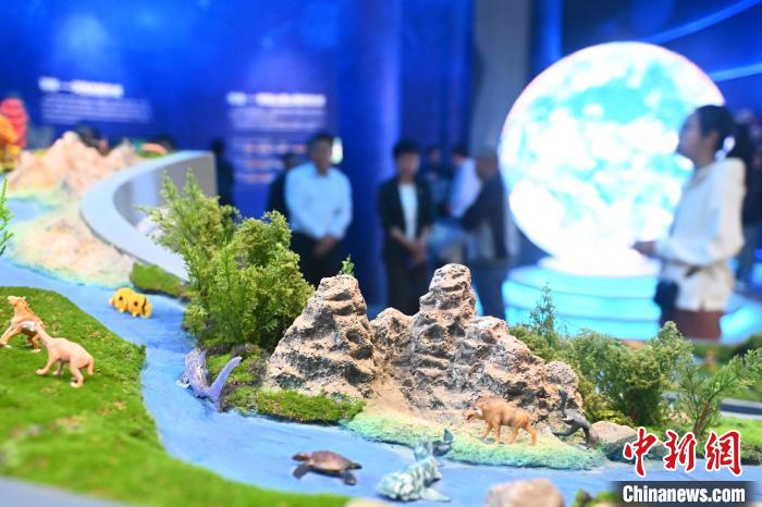 6月16日,在位于甘肅省張掖市肅南裕固族自治縣的祁連山國家公園自然博物館內(nèi),游人參觀祁連山動植物演化沙盤模型。中新社記者 李亞龍 攝