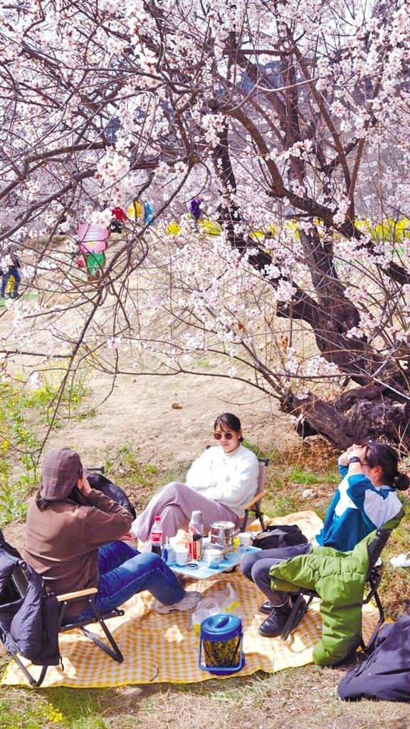 群眾在林芝市巴宜區(qū)林芝鎮(zhèn)嘎拉村的桃花樹(shù)下過(guò)林卡。記者 央拉 攝