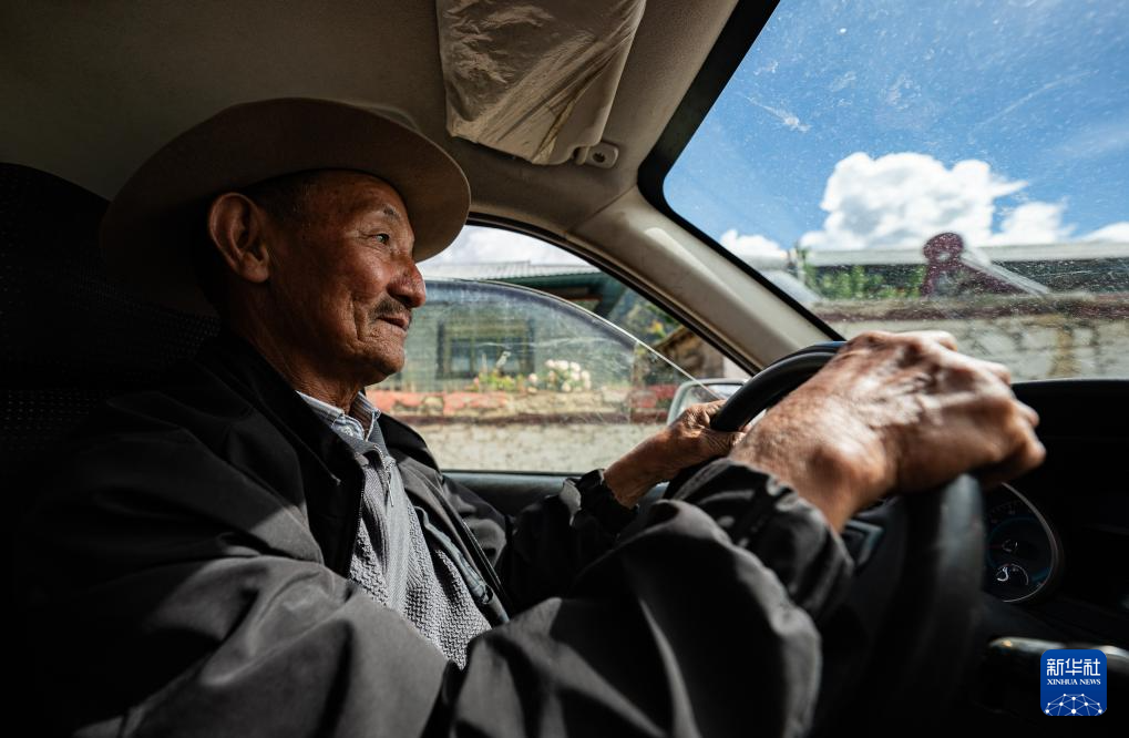 多布杰老人駕車(chē)前往林則生態(tài)文化旅游景區(qū)(7月23日攝)。新華社記者 丁增尼達(dá) 攝