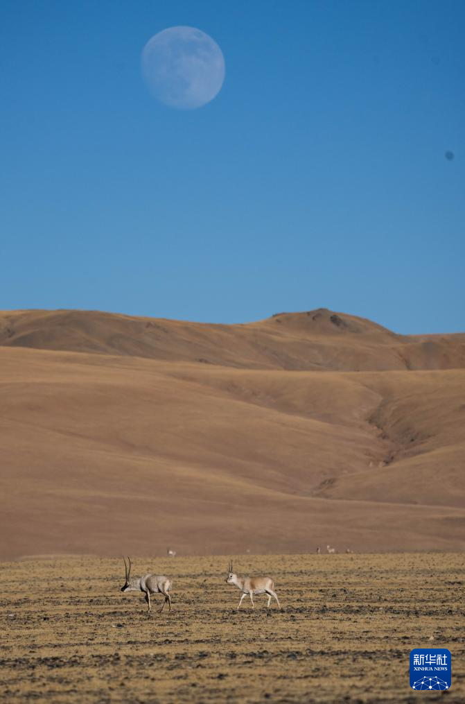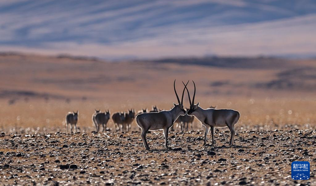 這是在羌塘國家級自然保護區(qū)拍攝的兩頭雄性藏羚羊(12月3日攝)。新華社記者 郭昱 攝