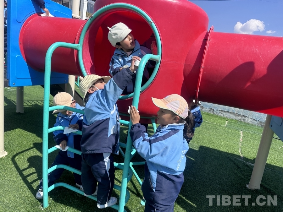 圖為拉孜縣幼兒園的孩子們?cè)谛@刨土種花