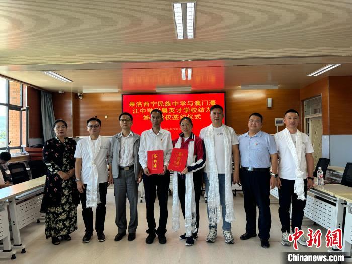 當(dāng)日,青海果洛西寧民族中學(xué)和澳門(mén)濠江中學(xué)附屬英才學(xué)校結(jié)為姊妹學(xué)校簽約儀式在果洛西寧民族中學(xué)舉行。