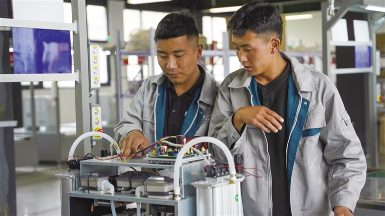 西藏清匠電器科技有限公司執(zhí)行董事劉炎林介紹,公司自2019年落地山南市乃東區(qū)以來,除了吸納本地大學(xué)生就業(yè)外,還堅持為當(dāng)?shù)厝罕姶罱ā凹议T口”的就業(yè)平臺,截至目前,已經(jīng)帶動當(dāng)?shù)?00余人就業(yè)。