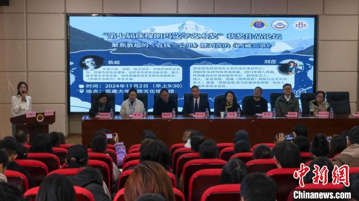 11月2日,西藏大學(xué)文學(xué)院主辦第七屆珠穆朗瑪文學(xué)藝術(shù)獎(jiǎng)獲獎(jiǎng)作品論壇,此次論壇聚焦敖超長(zhǎng)篇小說(shuō)《直線三公里》以及劉萱詩(shī)集《西藏三章》,作家、詩(shī)人和文學(xué)評(píng)論家以及讀者現(xiàn)場(chǎng)交流對(duì)話,了解創(chuàng)作經(jīng)歷、創(chuàng)作過(guò)程等。