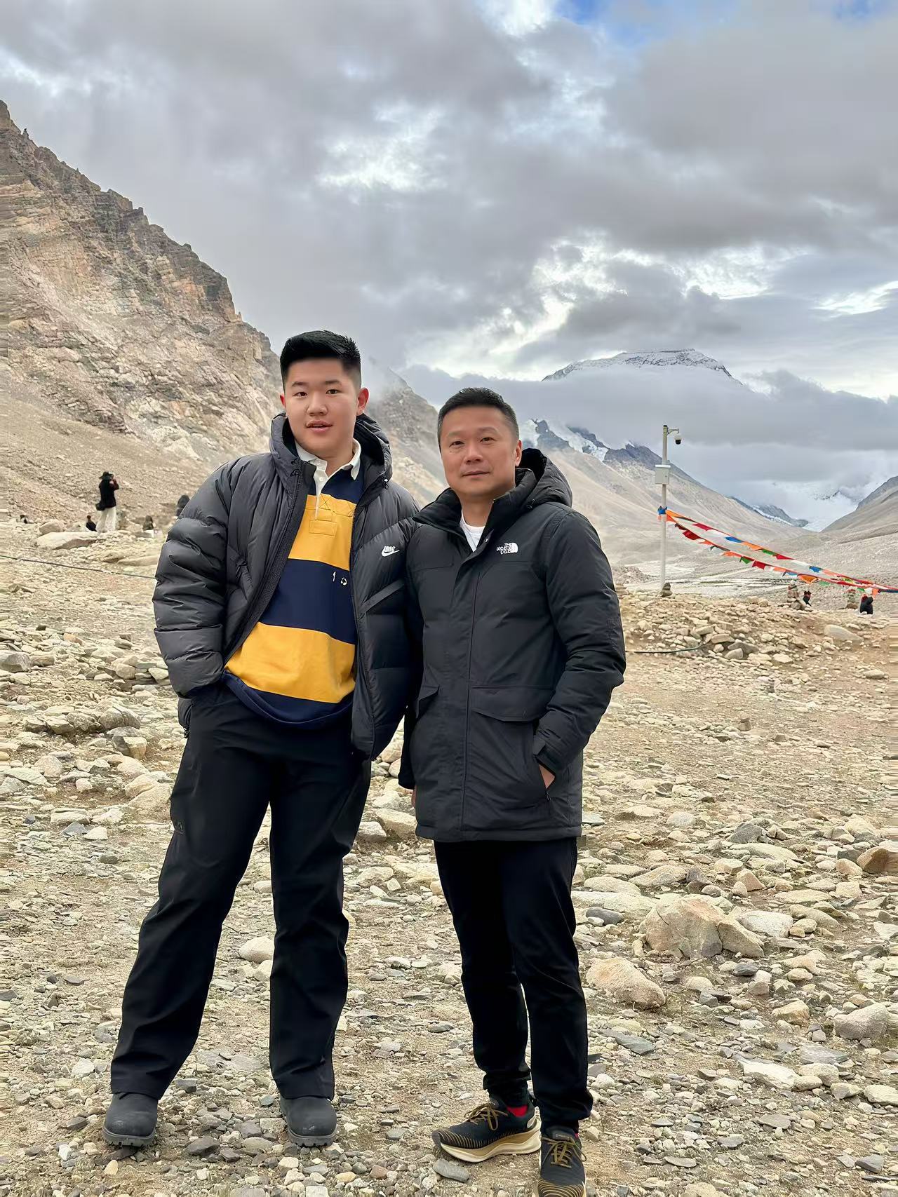 圖為2024年暑假,王若驍(左)參加西藏游學(xué)之旅期間在日喀則珠峰腳下的留影。
