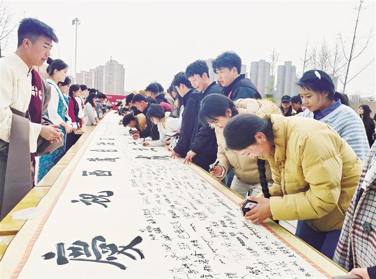 當(dāng)日清晨,一幅60米長的潔白卷軸徐徐鋪展,上書“雪域高原一甲子滄桑巨變 渭水河畔六十春立德樹人”,歌頌了西藏自治區(qū)成立60年來的輝煌成就,也表達(dá)了學(xué)校60余載為黨育人、為國育才的初心。學(xué)校領(lǐng)導(dǎo)、離退休干部、教職工、學(xué)生代表齊聚渭城校區(qū),鄭重地在長卷上簽下自己的姓名,每一筆都蘊(yùn)含著對黨的無限感恩、對祖國的無限熱愛和對西藏的無限祝福。