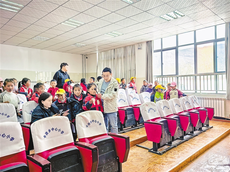 工作人員為學(xué)生進(jìn)行裸眼視力測(cè)試。記者 央金 攝