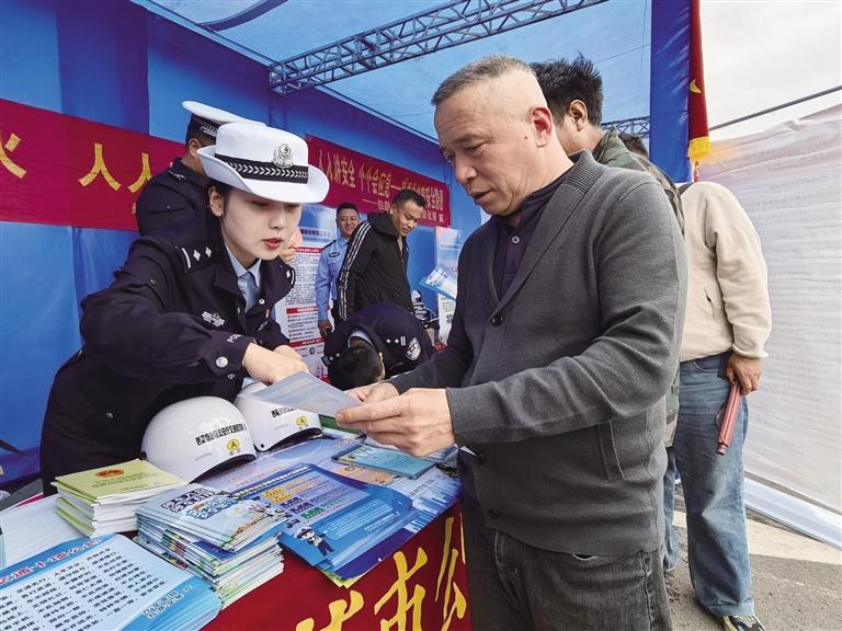 交警向市民講解交通安全知識。 文/圖 記者 次吉 婁夢琳