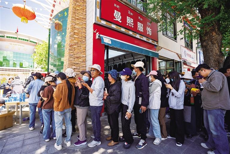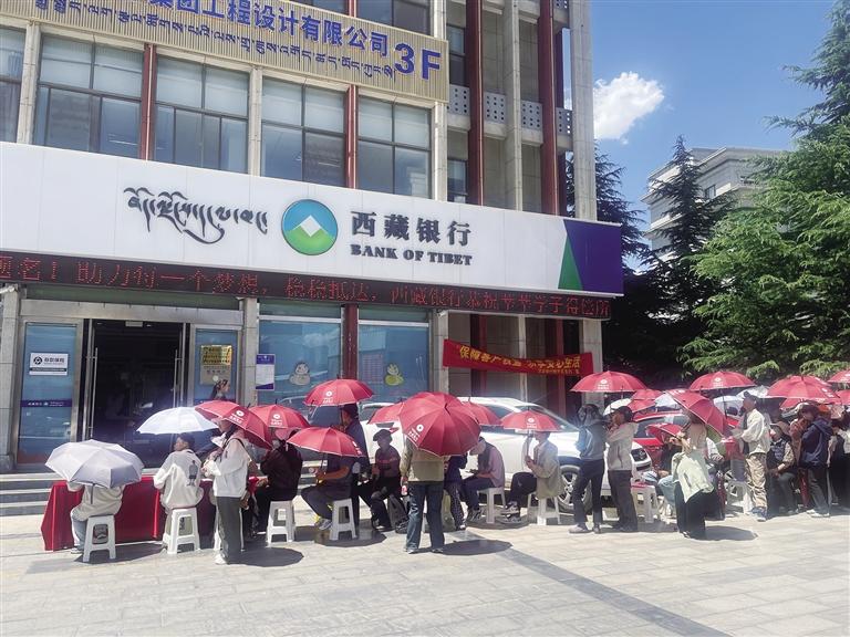 考生和家長在西藏銀行經(jīng)濟技術(shù)開發(fā)區(qū)支行門前排隊領(lǐng)取《招生計劃》。