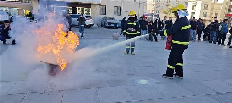 滅火演練現(xiàn)場(chǎng)。圖由西藏職業(yè)技術(shù)學(xué)院提供