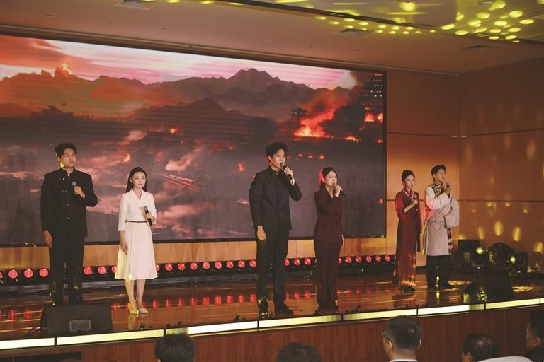 活動(dòng)尾聲,三地藝術(shù)家、高校教師代表共同朗誦《大寫的中國(guó)》,抒發(fā)對(duì)祖國(guó)的贊美與自豪之情。