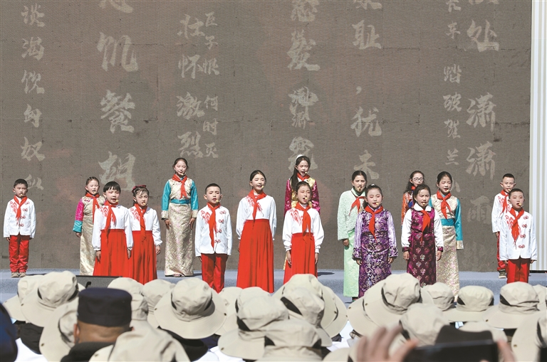 童聲合唱環(huán)節(jié),孩子們?cè)诒硌莨?jié)目。記者 扎西頓珠 攝