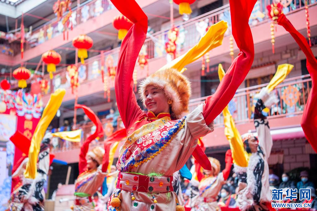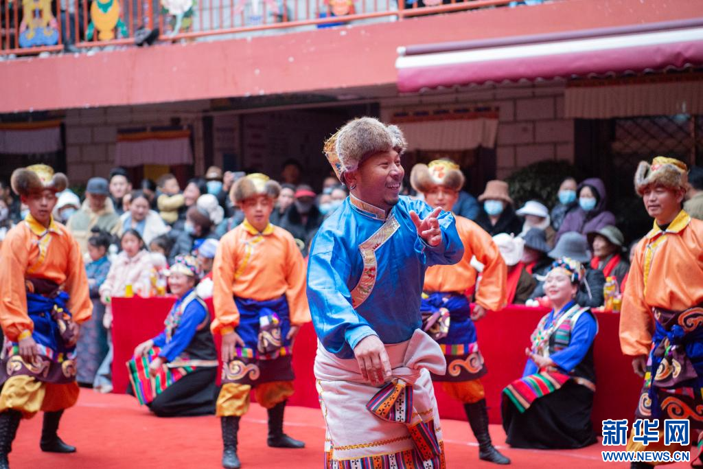 2月23日,拉薩市城關區(qū)雪巴拉姆藝術團的演員在德賽大院里表演。新華網 旦增努布 攝