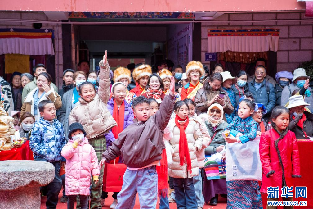 2月23日,小朋友們積極參與游戲互動。新華網 旦增努布 攝