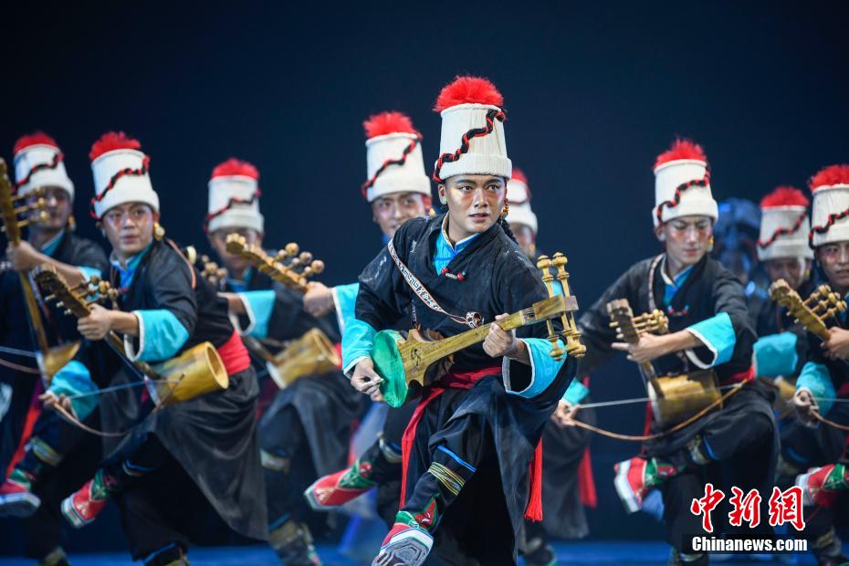 圖為西藏山南市藝術(shù)團(tuán)演員帶來舞蹈《源》表演。