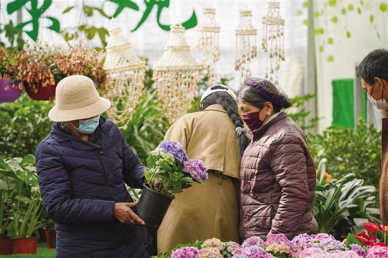 居民在花店內(nèi)購(gòu)買鮮花。記者 阿旺尼瑪 攝