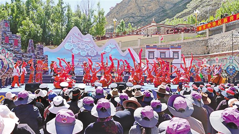 當(dāng)天早上,還不等開幕式文藝演出開始,洛扎縣文化廣場上早已人潮涌動、熱鬧非凡。人們身著節(jié)日盛裝,互致問候、笑靨如花。
