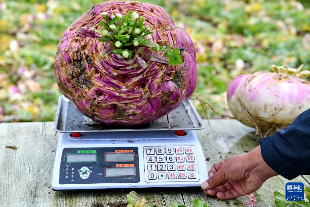 8月14日,拉薩市曲水縣才納鄉(xiāng)收獲10.01公斤重蕪菁塊根。新華社記者 張汝鋒 攝