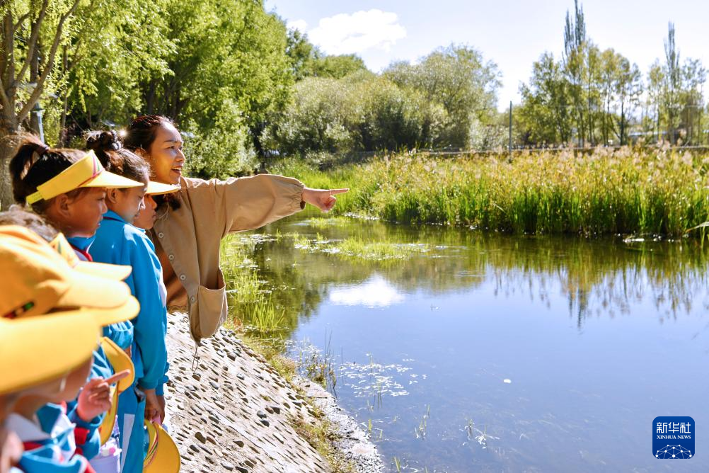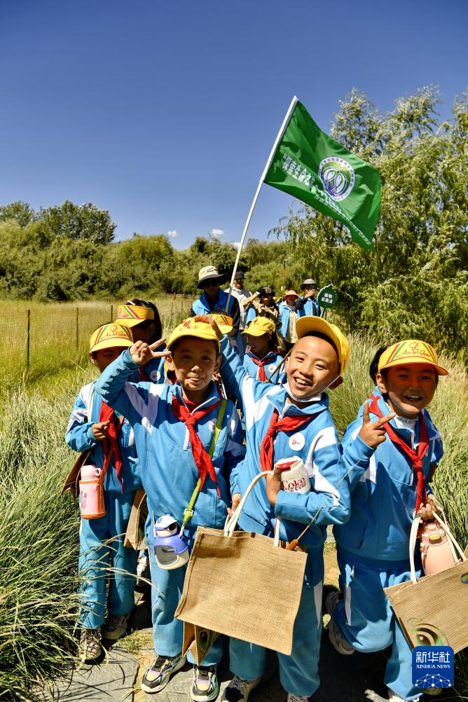8月15日,拉魯濕地國家級(jí)自然保護(hù)區(qū)管理局的工作人員為小學(xué)生們進(jìn)行動(dòng)植物科普。新華社記者 張汝鋒 攝