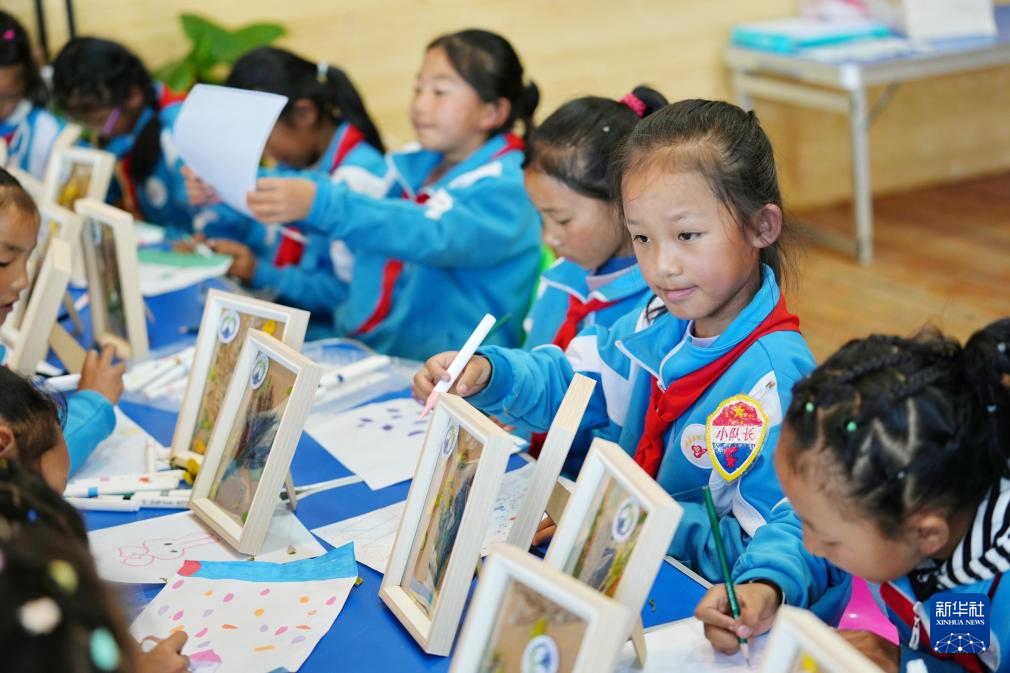 8月15日,拉魯小學(xué)的學(xué)生在拉魯濕地國家級(jí)自然保護(hù)區(qū)管理局科普小教室里進(jìn)行生態(tài)主題繪畫。新華社記者 張汝鋒 攝 ??