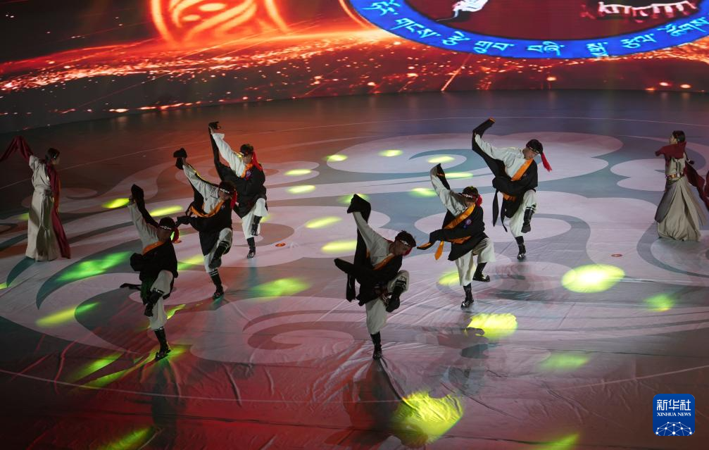 9月15日,演員在開幕式上表演藏戲。新華社發(fā)(盧丹陽攝)