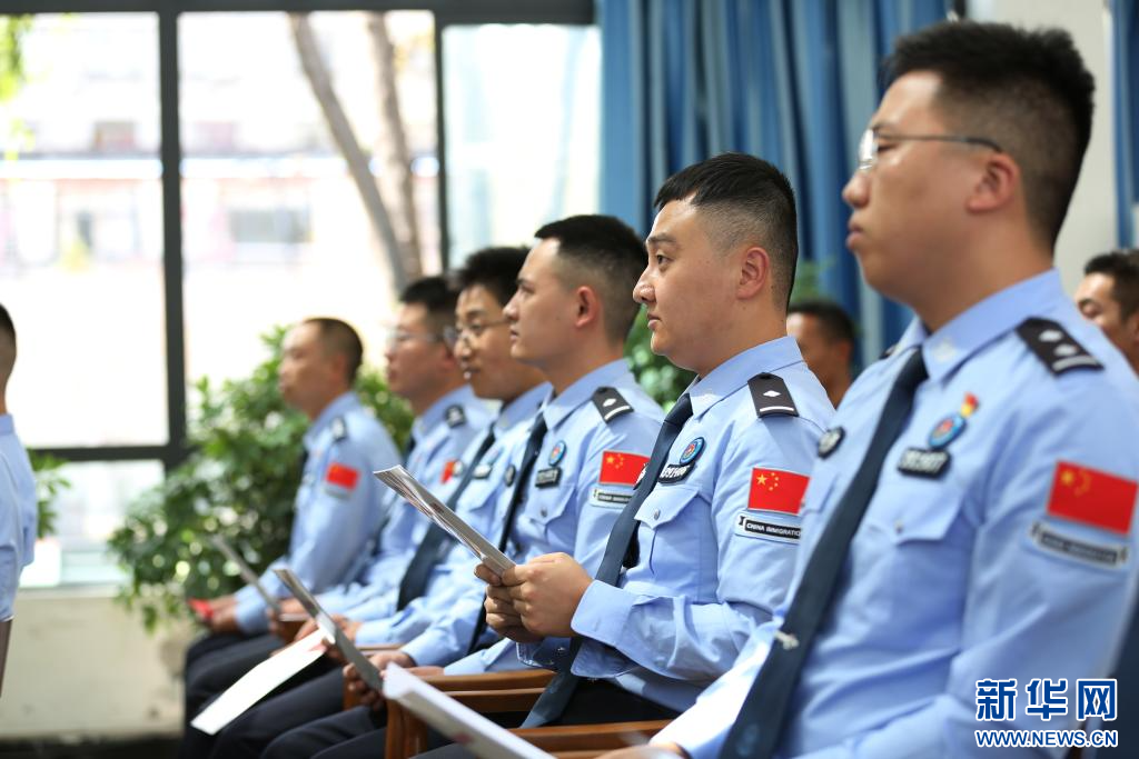 現(xiàn)場民警認(rèn)真聆聽詩歌分享(9月11日攝)。新華社發(fā)(肖富貴 攝)