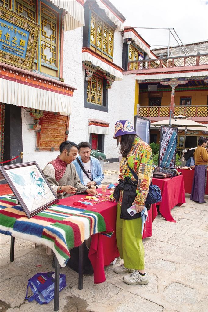 “你看,這個玩偶好別致,而且很有分量感!”走進夏扎大院,來自西安的游客王女士正在卓番林·措瓦店內(nèi)選購。卓瑪介紹,卓番林·措瓦巧妙融合傳統(tǒng)精髓與現(xiàn)代審美、藝術(shù)靈感與生活實用,致力于通過溫馨而富有情感的產(chǎn)品,守護并傳承精湛的手工藝,同時讓西藏的手工藝成為每個家庭溫馨記憶的守護者。