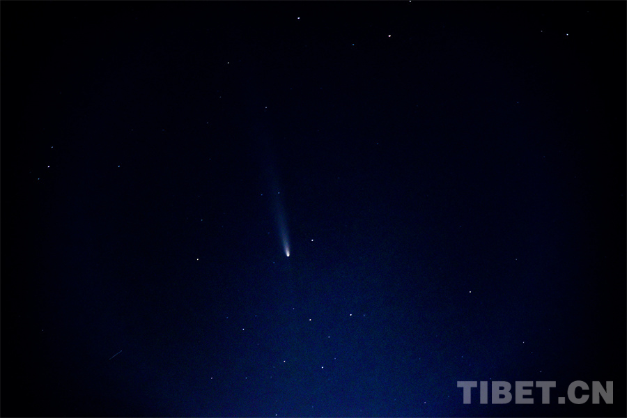 中國(guó)西藏網(wǎng)訊 近日,一顆6萬(wàn)年一遇的名為紫金山-阿特拉斯的彗星(C/2023 A3 Tsuchinshan-ATLAS,以下簡(jiǎn)稱“紫金山彗星”)“光臨”地球,吸引了眾多星空愛好者觀測(cè)。10月16日晚,記者在西藏自治區(qū)拉薩市柳梧大橋上有幸用相機(jī)記錄下這一時(shí)刻。