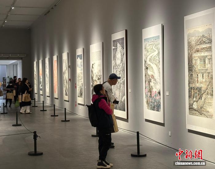 觀眾在四川美術館觀看第三屆川藏美術名家交流展作品。單鵬 攝