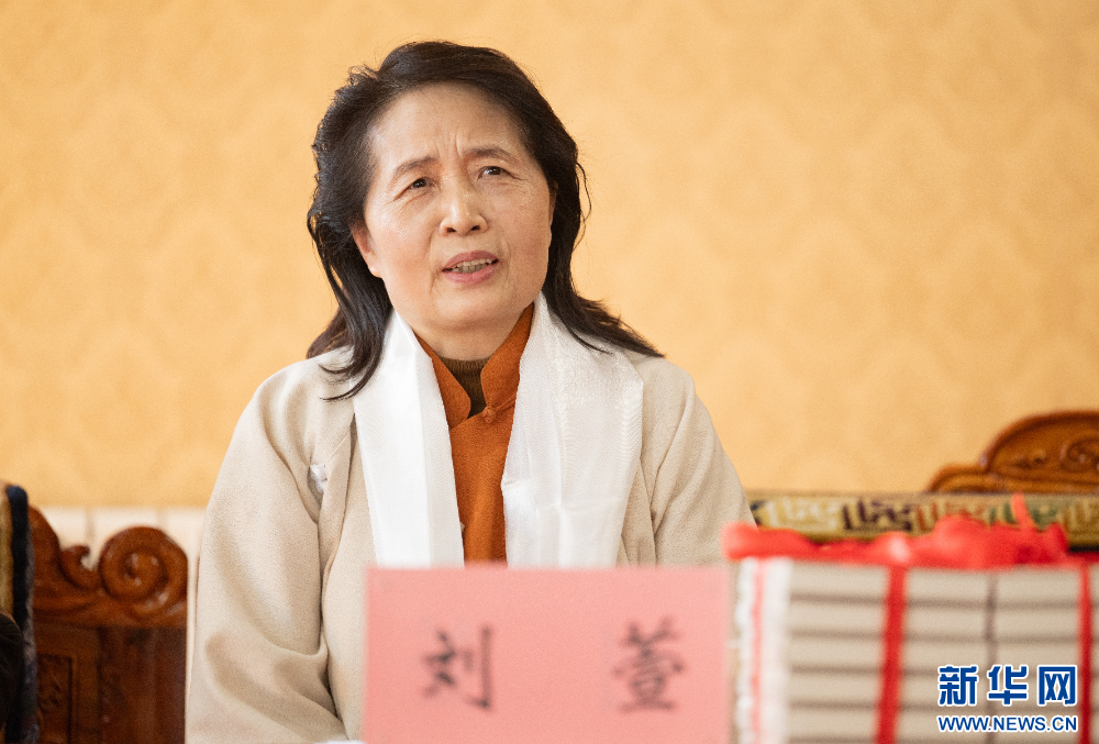 1月15日,在活動(dòng)現(xiàn)場(chǎng)劉萱向西藏自治區(qū)作協(xié)、西藏自治區(qū)圖書(shū)館捐贈(zèng)了《生命高原》詩(shī)集。新華網(wǎng) 旦增努布 攝