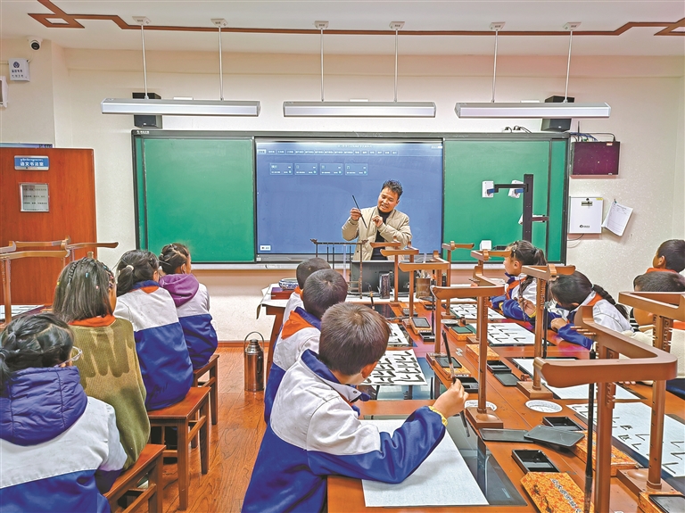 他的教學足跡遠不止于校園。2019年起,西藏自治區(qū)書法美術培訓中心與拉薩市少年宮建立戰(zhàn)略合作,他長期在此擔任漢文書法培訓負責人與專職書法教師。