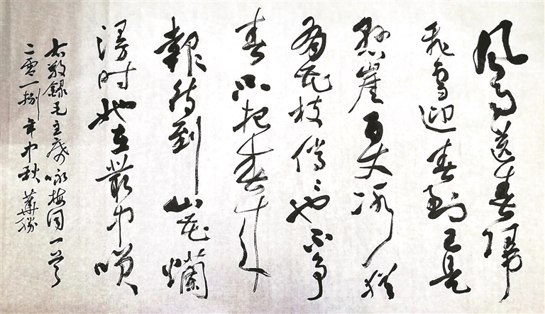 這一刻,時光仿佛倒流——上世紀70年代,來自陜西農(nóng)村的少年侯華勝,正被電視劇《滄海一粟》中畫家劉海粟揮毫潑墨的瞬間所感染,那道“墨色的閃電”第一次照亮了他對筆墨世界的好奇與向往。數(shù)十年后,這位少年以其雄渾有力的筆觸、開闊磅礴的氣勢在西藏書法界備受贊譽。