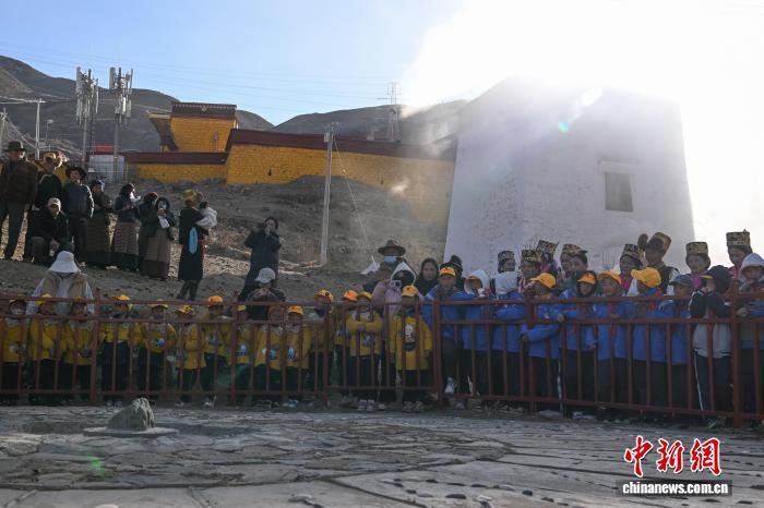 圖為達普天文觀測臺年度觀測活動現場,村民拋撒糌粑祈福豐收。中新社記者 貢嘎來松 攝
