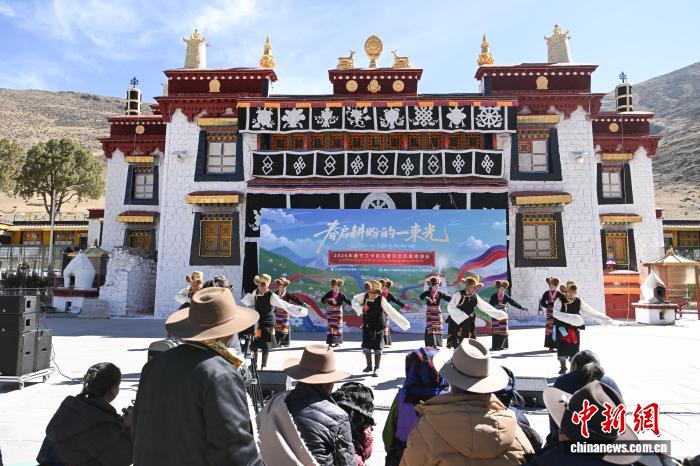 圖為村民著盛裝載歌載舞迎達普天文觀測臺年度觀測活動。中新社記者 貢嘎來松 攝