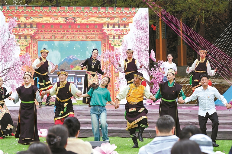 本次聯(lián)誼會(huì)以“桃吟莞宜 聲動(dòng)巴宜”為主題,分為“春桃映雪·山海相依”“桃枝含露·詩(shī)寄云巒”“樂(lè)漾桃香·藝脈流長(zhǎng)”三個(gè)篇章,《嘎拉村的歡笑》《最美的答卷》《來(lái)自遠(yuǎn)方的信》《金色的寶庫(kù)》等22個(gè)節(jié)目將東莞嶺南文化的溫婉與巴宜“雪域江南”的壯美精彩融合,民族韻律與現(xiàn)代和聲交相輝映,奏響了一曲曲民族團(tuán)結(jié)的生動(dòng)樂(lè)章。