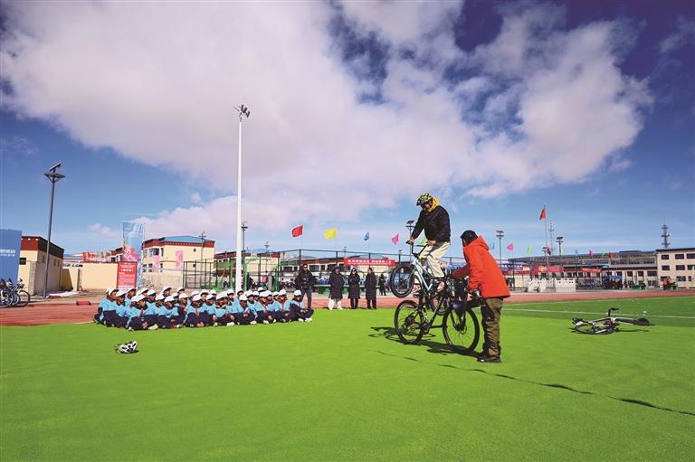 活動(dòng)堅(jiān)持榜樣引領(lǐng)+多元育人相結(jié)合,著力提升活動(dòng)育人實(shí)效。特邀西藏優(yōu)秀滑雪運(yùn)動(dòng)員次仁占堆、扎西旦珍親臨現(xiàn)場,結(jié)合自身成長、艱苦訓(xùn)練、奮勇爭先的運(yùn)動(dòng)經(jīng)歷,向青少年分享體育追夢(mèng)歷程與拼搏精神,以身邊榜樣激勵(lì)青少年樹立運(yùn)動(dòng)興趣、磨礪意志品格、堅(jiān)定理想信念。同時(shí),聯(lián)動(dòng)自治區(qū)禁毒辦,組織那曲市、聶榮縣禁毒工作骨干開展禁毒專題宣傳講座,通過科普禁毒法律法規(guī)、講解毒品危害、普及防毒知識(shí),將體育健身與禁毒安全教育深度融合,引導(dǎo)青少年在強(qiáng)身健體的同時(shí),牢固樹立防毒拒毒意識(shí),守住健康成長底線,實(shí)現(xiàn)體育賦能與法治教育協(xié)同推進(jìn)?;顒?dòng)還為學(xué)校捐贈(zèng)了體育器材。