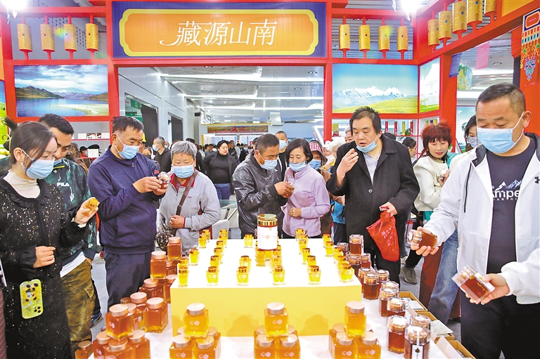 圖為2023年4月,安徽省援藏工作隊(duì)組織山南市17家企業(yè)參加淮北食品工業(yè)博覽會。(圖片由安徽省援藏工作隊(duì)提供)