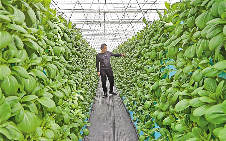圖為那曲市浙江產(chǎn)業(yè)援藏精準(zhǔn)扶貧示范基地的工作人員查看氣霧栽培蔬菜的長勢。記者 次旺 攝