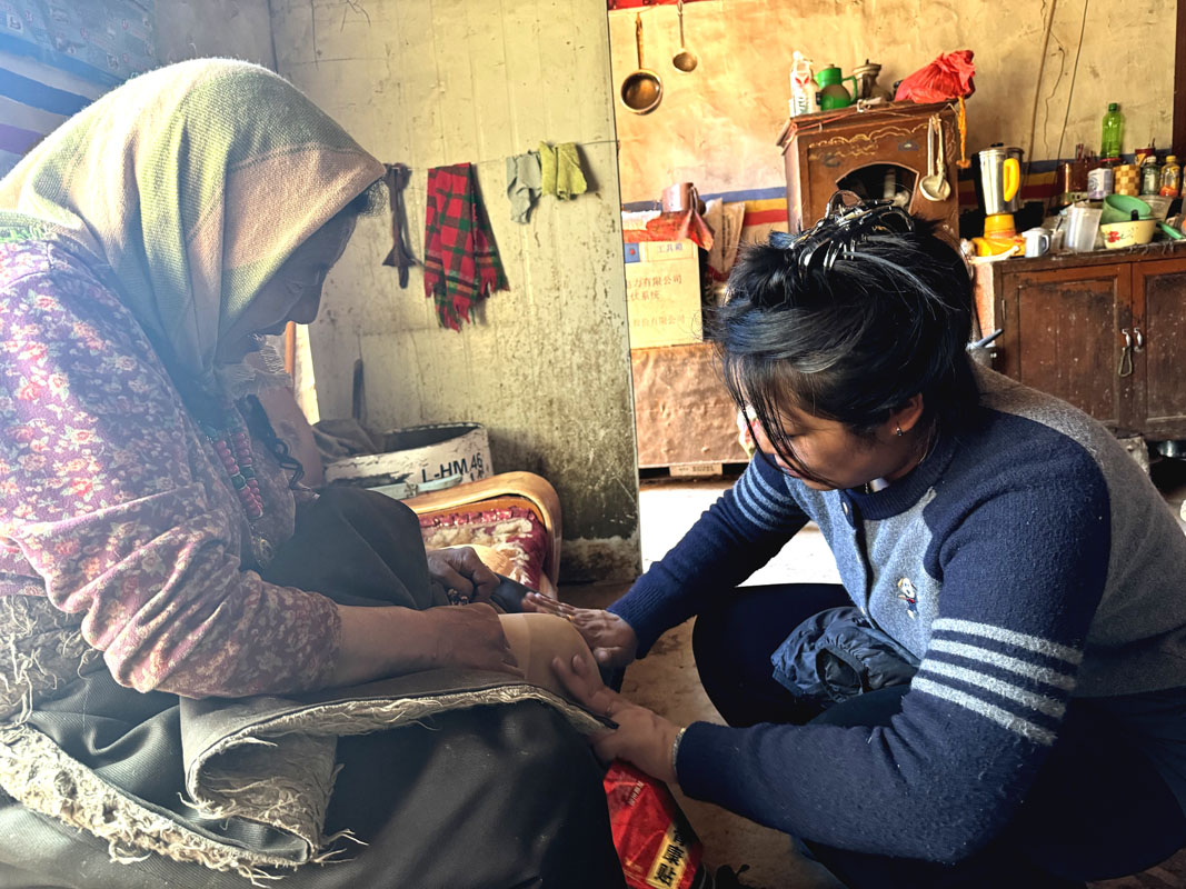 從“實”處出發(fā),走心為民辦實事,使黨群關系更加密切。每到一戶,駐村工作隊耐心傾聽、收集牧民群眾對村居各項工作的意見建議和訴求,以及當前階段生產(chǎn)生活中存在的困難和訴求,發(fā)放《西恰曲超超貢瑪村駐村工作隊便民服務聯(lián)系卡》89張,收集到群眾意見建議2條,讓牧民群眾心里更加踏實。先后為路途較遠且在夏季牧場的群眾送去感冒、發(fā)燒、咳嗽、膏藥貼等常見易發(fā)病非處方治療藥物9種15類、折合人民幣750元藥品。為12名出行不便老人進行理發(fā),為1位個體戶解決了打印機無法使用問題。慰問五保老人和困難戶2戶7人,送去慰問金400元。在看到頓珠老人因家人前往安多縣送學生上學獨自在家且所穿衣物偏薄,駐村工作隊員便分別拿出自己換洗的保暖衣物為其換上。