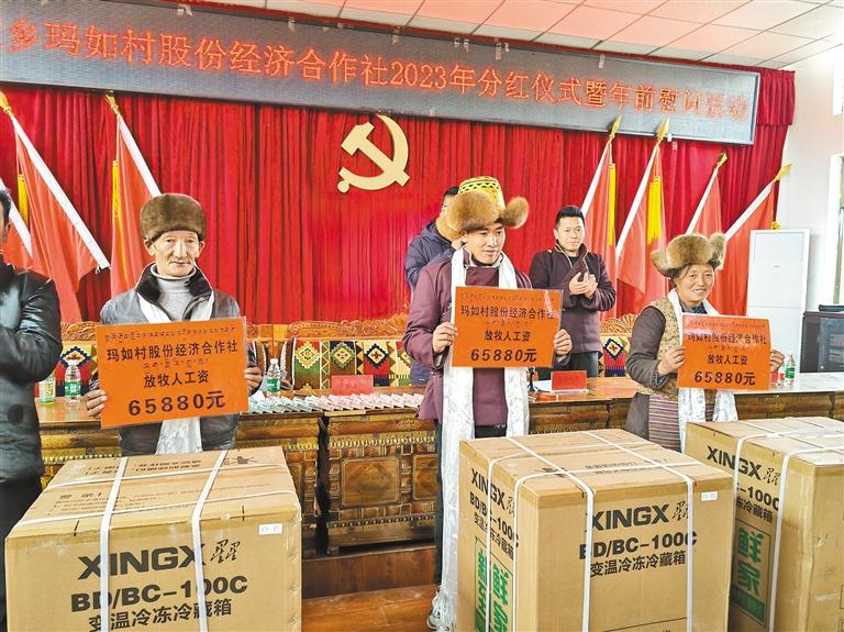 圖為瑪如村舉辦產(chǎn)業(yè)分紅和工資發(fā)放儀式現(xiàn)場(chǎng)。記者 丹增平措 攝